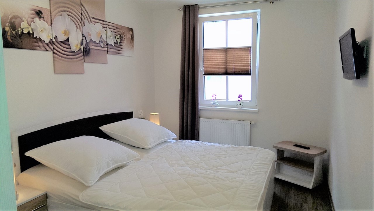| Schlafzimmer | 1 Schlafzimmer mit Doppelbett, Flachbildschirm mit Kabel-TV, abgedunkelt und ruhig gelegen, großer Kleiderschrank, Insektenschutz, Kinderreisebett kann zugestellt werden |